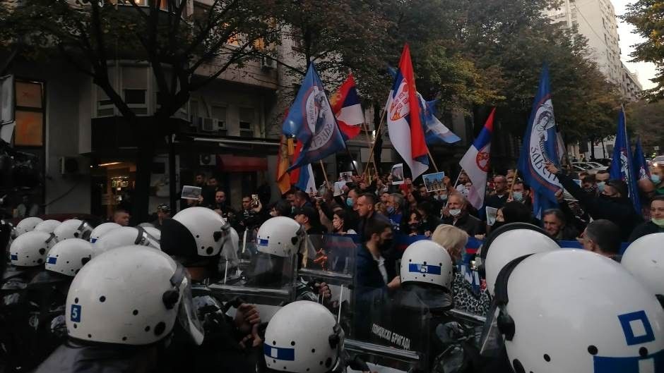 Të mbledhurit para CZKD-së, të cilët ishin rreth 200, që i përkasin organizatës së djathtë 'Zavetnici' dhe grupeve të tjera të krahut të djathtë, dhe midis tyre është udhëheqësja e organizatës, Milica Durdeviç, e cila i drejton ata. Ajo i kërkoi policisë që t'i linte të afroheshin dhe të përçonin mesazhin e tyre.