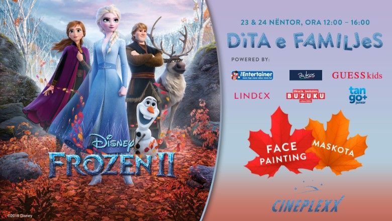 Eventi për filmin Frozen 2 do të mbahet më 23-24 nëntor, prej orës 12:00 deri 16:00, ku fokusi kryesor do të jetë pikërisht premiera e këtij filmi. Për fëmijët do të ketë shumë shpërblime dhe aktivitete si: