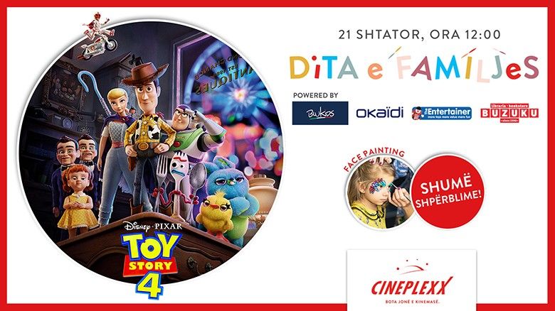 Njëri prej filmave të shumë pritur për fëmijë po arrin në Cineplexx! Kinemaja austriake, për filmin Toy Story 4, do të organizojë eventin Dita e Familjes, ku do të ketë shumë shpërblime dhe aktivitete.