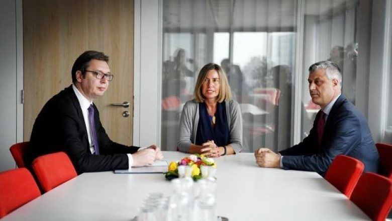 Shërbimi diplomatik evropian njoftoi se Federica Mogherini u takua me Aleksandar Vuçiqin dhe Hashim Thaçin në kuadër të dialogut të ndërmjetësuar nga BE.