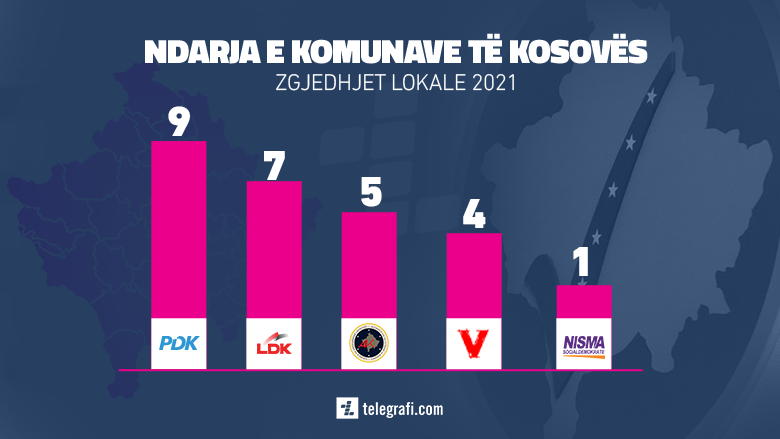 Aleanca për Ardhmërinë e Kosovës, ka marrë pesë, ndërsa Lëvizja Vetëvendosje katër komuna.