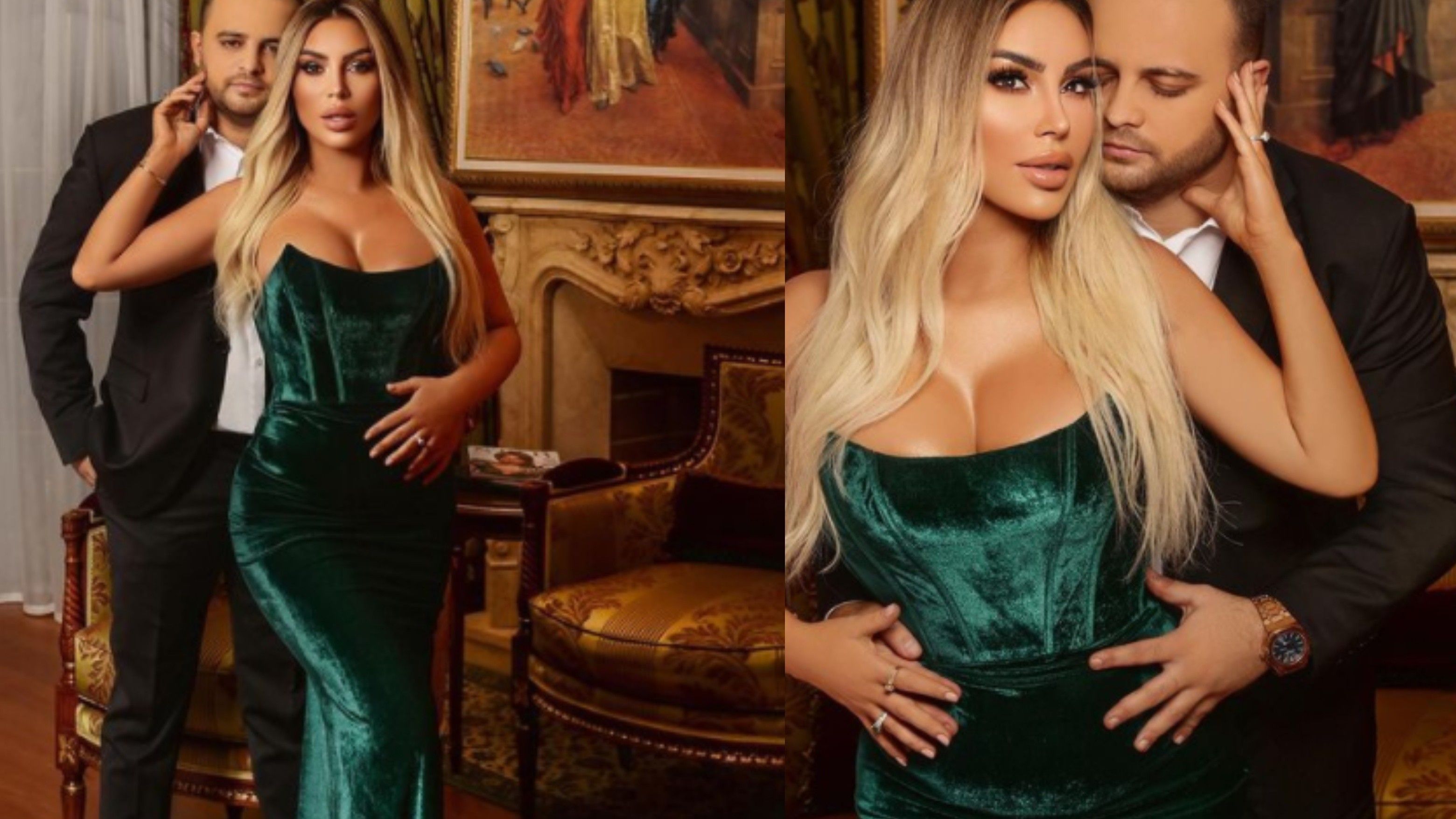Në anën tjetër, biznesmeni nga Gjilani po ashtu ka zgjedhur një kostum të zi për të pozuar pranë gruas.
