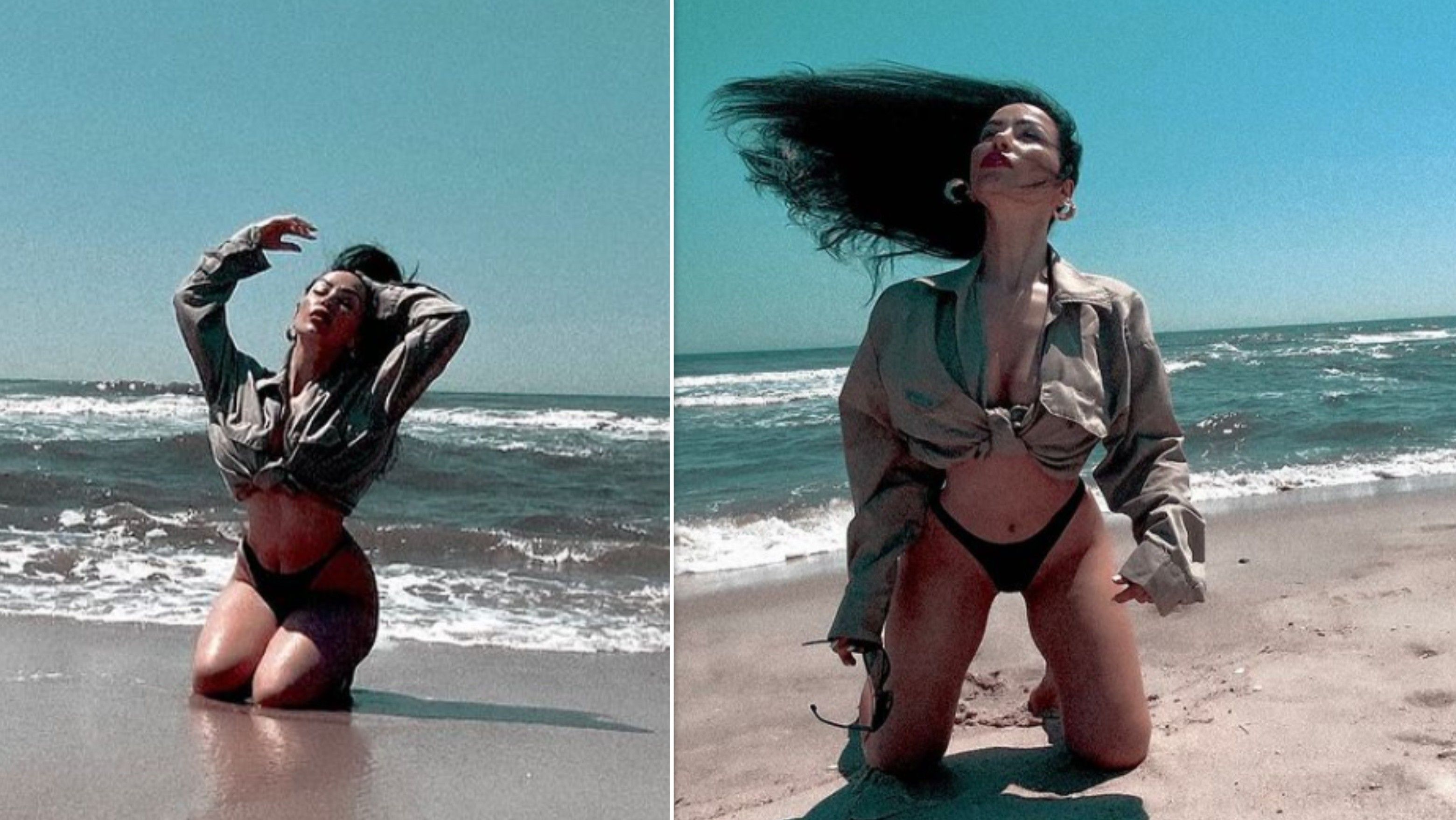 Në një palë bikini të zeza dhe këmishë në pjesën e sipërme, krijuesja e hitit “Si Bass” vjen në formë të mrekullueshme.