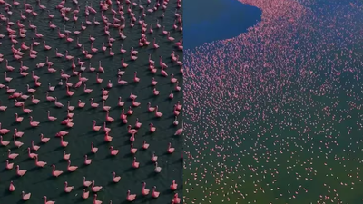 Migrimi vjetor ka sjellë një numër jashtëzakonisht të madh flamingosh në liqenin pranë Jaipurit, duke i shndërruar ujërat e tij të cekëta të kripura në një spektakël të gjallë.