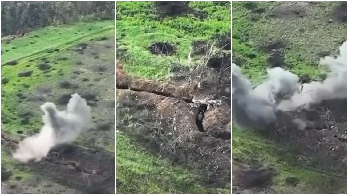 Së paku dy shpërthime janë dokumentuar përmes këtyre pamjeve, dhe një rus goditet keq nga forcat ukrainase, i cili shihet duke lëvizur ngadalë aty.