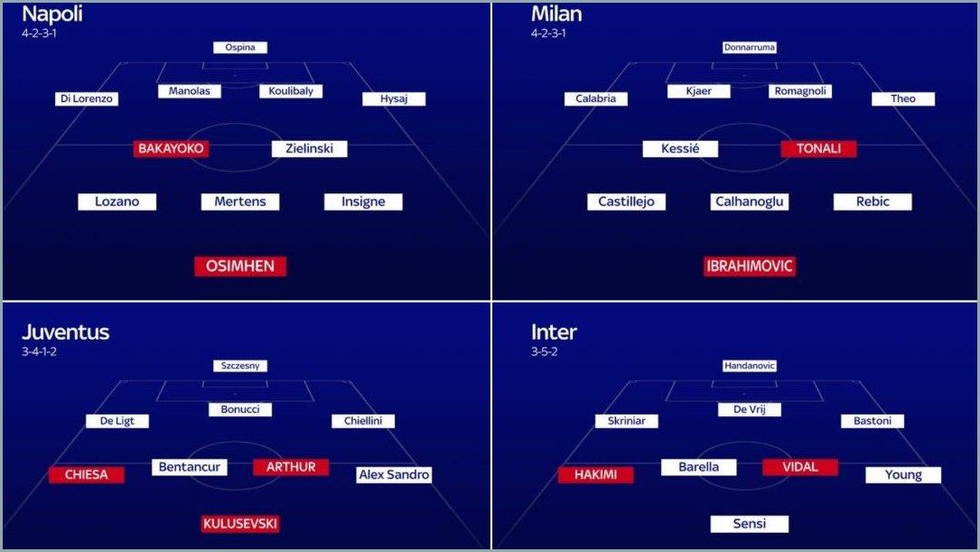 Sky Sport ka bërë një përzgjedhje me formacionet e mundshme, me të cilat pritet të luajnë klubet italiane në javët në vijim.