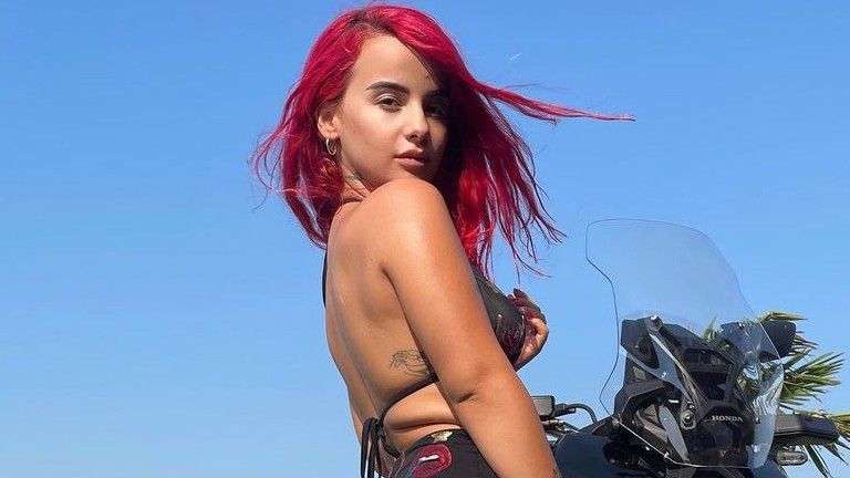 Gjatë të dielës, Rina ka pozuar para një motoçiklete duke vënë në pah figurën e saj trupore.