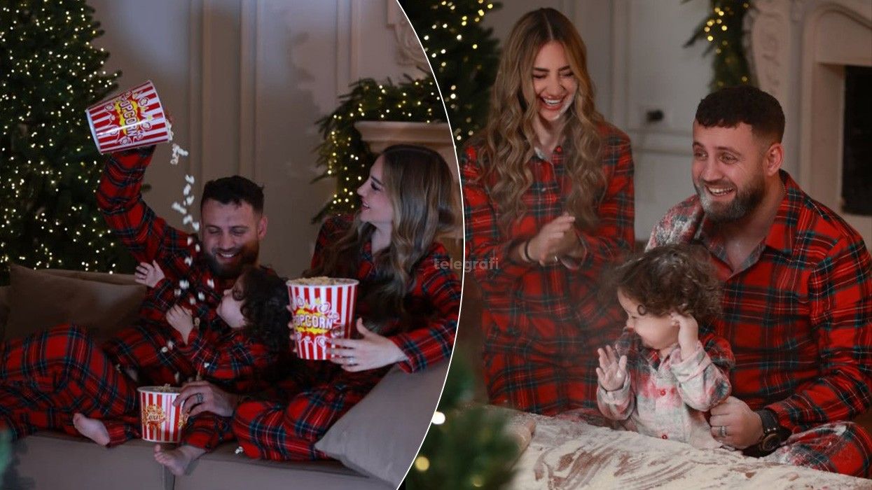 Në imazhe, Kiara, Luizi dhe vogëlushja Luna Mari shfaqen të veshur me pizhame me kuadrata të kuqe dhe të zeza, duke transmetuar një ndjesi të fortë ngrohtësie, thjeshtësie dhe atmosfere festive familjare. /Telegrafi/