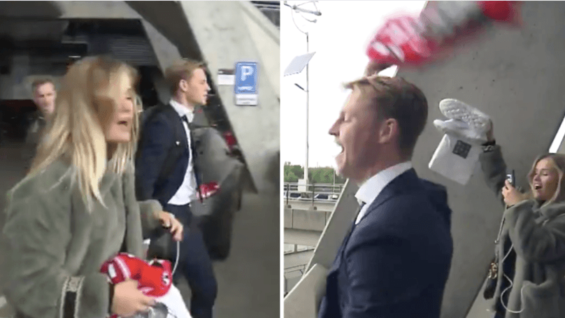 Edhe e dashura e tij, Mikky Kiemeney, kishte një reagim të bukur kur e kuptoi që tifozët po e presin pikërisht mesfushorin.