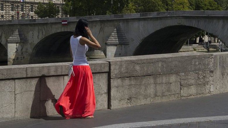 Propozimi i stilistit është të zbusë siluetën e mprehtë të një fundi të gjatë të ngushtë