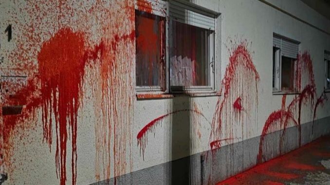 Avokati serb, Çedomir Stojkoviq ka publikuar video që tregon se “huliganë të SNS‑it” kanë hedhur bojën mbi shtëpi, por sipas tij Prokuroria nuk ka ndërmarrë ende asnjë veprim, edhe pse videoja u është dorëzuar atyre.