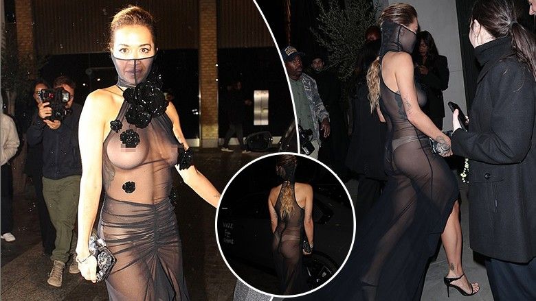 Rita u vesh me një mënyrë guximtare në fustanin e saj transparent që rrezikoi një mini-defekt te pjesa e gjoksit, i cili kishte disa detaje lule me flori të vendosura strategjikisht.