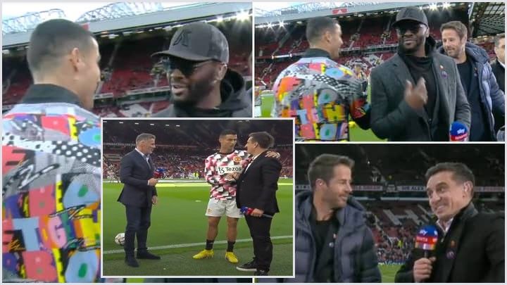 Ronaldo pati një bisedë me ish-bashkëlojtarin Louis Saha, me të cilin ka luajtur në të kaluarën në Old Trafford. Më pas, shkoi për ta përshëndetur ish-lojtarin e Liverpoolit dhe Tottenhamit, Jamie Redknapp.
