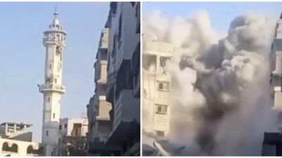 On social media, a video is circulating that allegedly shows a direct hit by an Israeli missile on the minaret. https://t.co/nyZARdNL9Ypic.twitter.com/C1U5CPUaoS