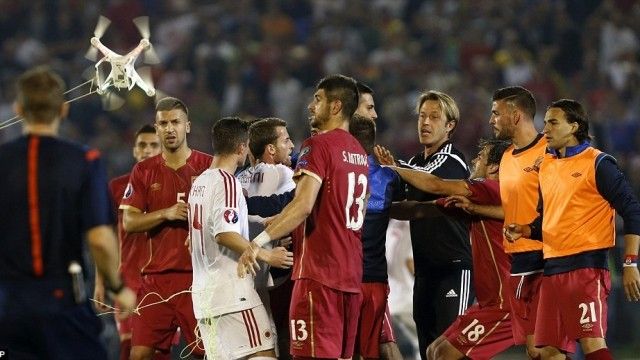 Flamuri që ndodhej në dronin që fluturoi mbi stadium u ngris nga lojtarët serbë duke provokuar, ndërsa në fushë zbriti për të thënë të tijën edhe Ivan Bogdanov. Ai person që krijoi trazira edhe në rastin e takimit Itali – Serbi që u zhvillua në Xhenova.