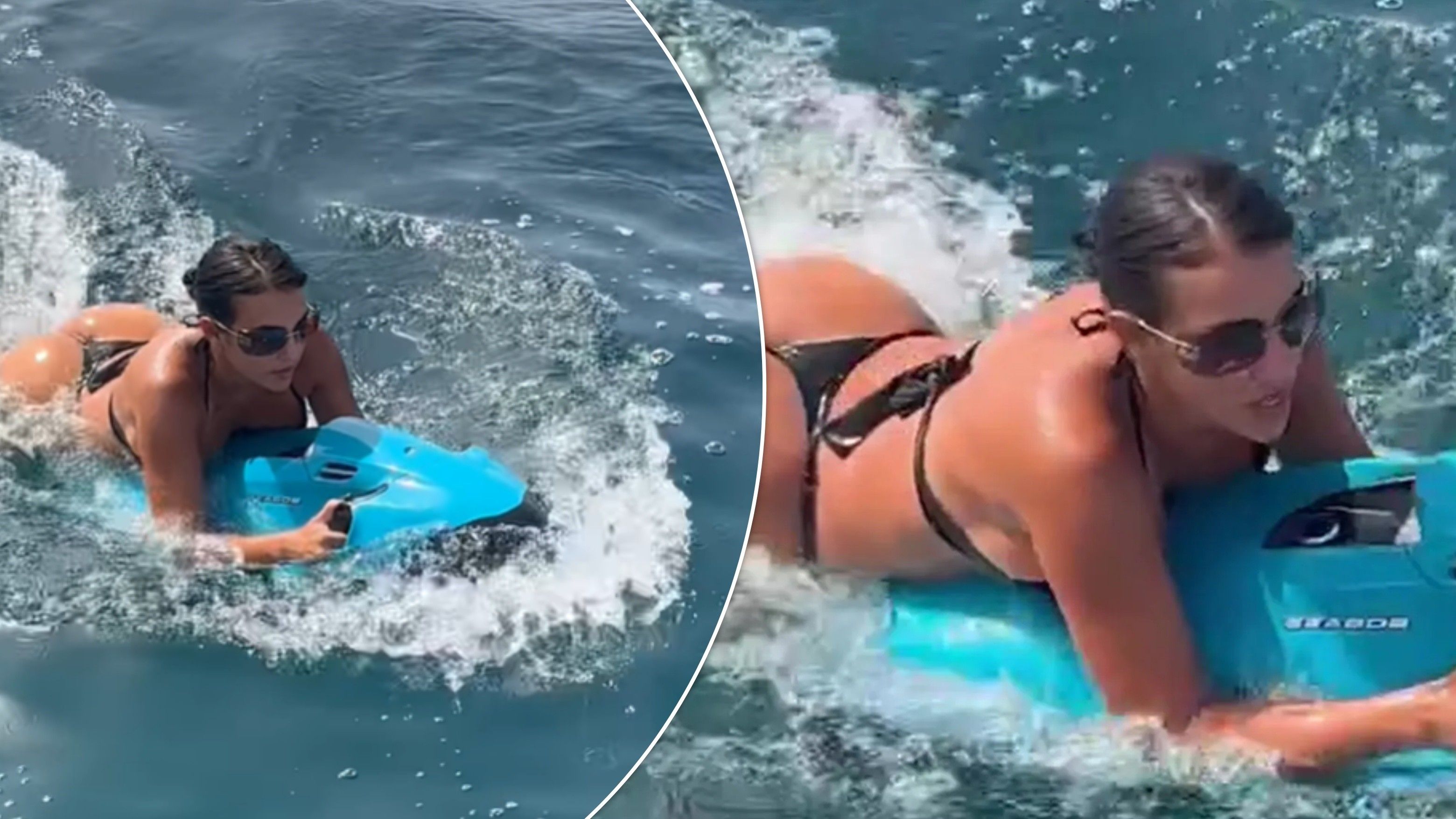 E dashura e Cristiano Ronaldos u kujdes të vinte në pah të pasmet teksa lundronte në ujë përmes një mjeti për surf.
