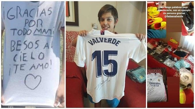 Luca mori një pako me pajisje sportive, fanella të firmosura nga Valverde dhe një përqafim të madh në distancë nga një prej lojtarëve më të mirë në botë.