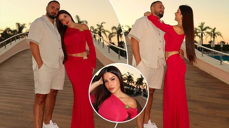 Fotot janë realizuar në një ambient të ngrohtë veror, pranë një resorti luksoz, ku perëndimi i diellit, palmat dhe atmosfera tropikale krijojnë sfondin perfekt për momentet romantike të çiftit. Elita, me flokët e saj të gjata dhe të lëshuara, duket elegante dhe plot finesë, ndërsa në fytyrën e saj shkëlqen një buzëqeshje e qetë dhe e sigurt.