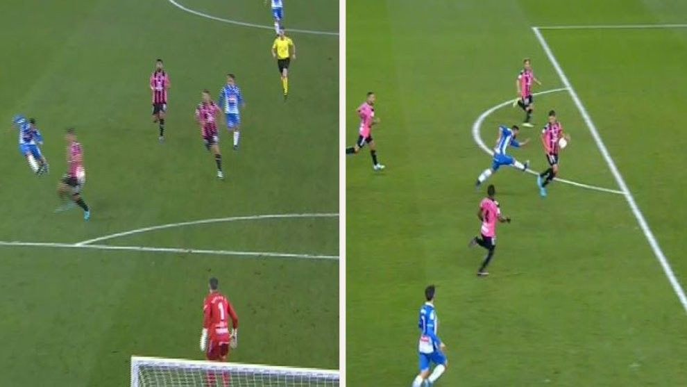 Gjyqtari kryesor i takimit akordoi një penallti në favor të Espanyol për shkak të një prekje të topit me dorë nga lojtari i Tenerifes, Jorge Saenz.