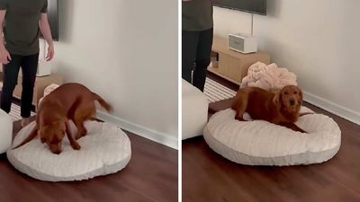 Një retriver i artë që nuk mund të fshehë entuziazmin ndërsa provon për herë të parë krevatin e ri, emocionoi përdoruesit e TikTok-ut dhe shpejt u bë viral.