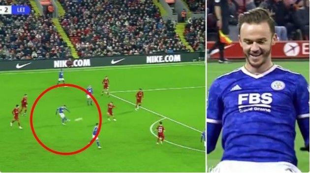James Maddison shënoi një supergol me një goditje të fortë dhe të saktë nga 25 metra për të kaluar Leicester Cityt në epërsi të përkohshme 3-1 kundër Liverpoolit në Anfield të mërkurën mbrëma.