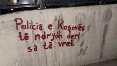 Në to lexohen mbishkrime si: “Policia e Kosovës të ndrydh derisa të vret”, “Policia i ka duart me gjak”, “Policia të vret” dhe “Kush na mbron prej Policisë?”.