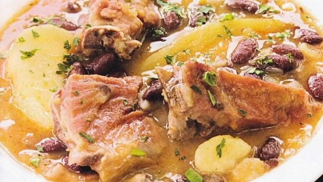 6. Kur patatet të jenë gjysmë të ziera, shtohet mishi i brinjëve dhe vazhdon zierja.