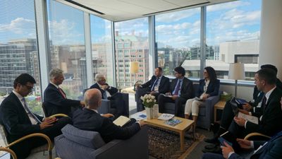 Në kuadër të pjesëmarrjes në Takimet Pranverore 2026 të Fondit Monetar Ndërkombëtar (FMN) dhe Bankës Botërore (BB), që po mbahen në Washington DC, Guvernatori i Bankës Qendrore të Republikës së Kosovës (BQK), Ahmet Ismaili, i shoqëruar nga Anëtarja Joekzekutive e Bordit, znj. Latifi-Jashari, Zëvendësguvernatori z. Fusha dhe bashkëpunëtorë të tjerë, zhvilloi një takim me Drejtorin e Departamentit Evropian në Fondin Monetar Ndërkombëtar (FMN), z. Alfred Kammer.