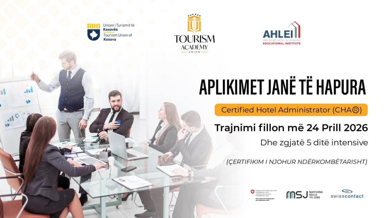 Për herë të parë në Kosovë po organizohet trajnimi dhe certifikimi për Certified Hotel Administrator (CHA), një nga kualifikimet më të njohura ndërkombëtare në industrinë e hotelerisë dhe mikpritjes, ndërsa aplikimet tashmë janë të hapura.