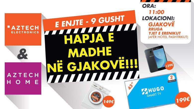 Aztech tani vjen edhe me një pikë tjetër të shitjes, në qytetin e vjetër të Gjakovës. Hapja do të bëhet ditën e Enjte, me datë 9 Gusht në orën 11:00, lokacioni Gjakovë, në rrugën "Yjet e Erenikut” (afër Hotel Pashtrikut).