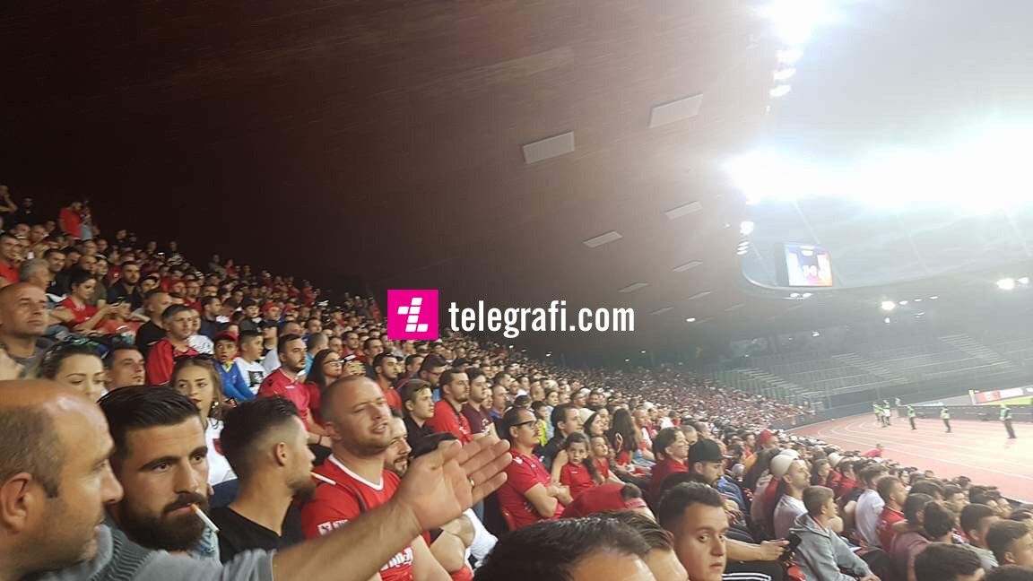 Por, në tribuna të gjithë ishin fitues pasi atmosfera ishte e madhe, posaçërisht në momentin e himnit kombëtar shqiptar.