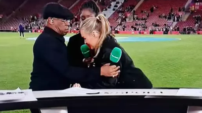 Ndërsa po prezantonte ndeshjen në panelin e ITV së bashku me Ian Wright dhe Anita Asante, 38-vjeçarja humbi ekuilibrin dhe u rrëzua papritur.