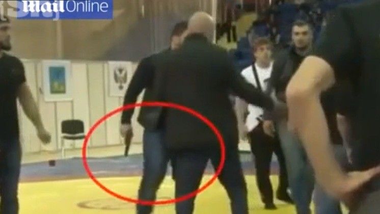 Videoja e filmuar në qytetin e Stary Oskol, shfaq momentin kur truproja e djalit të një pasaniku rus, nxjerr pistoletën pas përfundimit të një ndeshje të mundjes.
