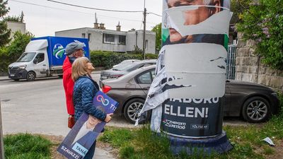 Një poster i shqyer i Viktor Orbánit (Budapest, 13 prill 2026)