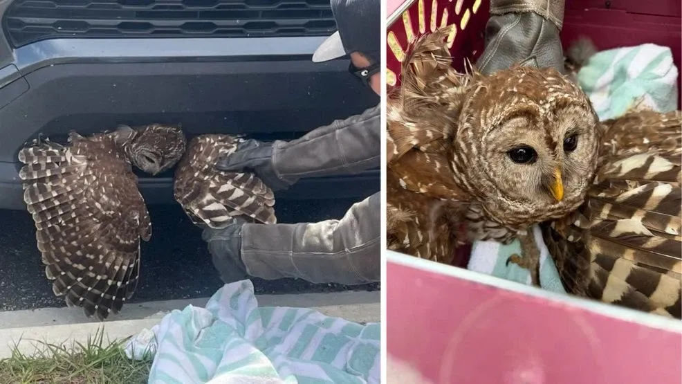 Huti u gjet gjallë, por i bllokuar në grilën e përparme të automjetit pas një përplasjeje të dukshme në rrugë.