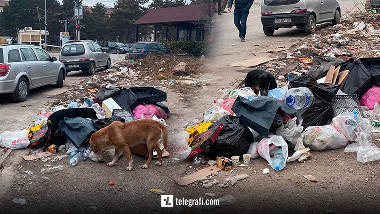 Në fotografi shihen edhe qenë endacak, tek këto mbeturina, të cilët paraqesin rrezik për banorët që jetojnë përreth si dhe për qytetarët të cilët kryejnë shërbime në QKUK.