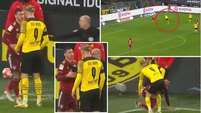Megjithatë, Hernandez ktheu kokën ndërsa ishte i rrëzuar në tokë dhe menjëherë ngriti dorën kur u çua në këmbë pasi kuptoi se ishte Haaland, ai që kishte bërë ndërhyrje në të.