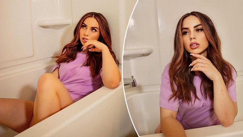 Së fundmi, këngëtarja nga Vitia realizoi disa fotografi në vaskë, ndërsa shfaqte linjat e saj atraktive të trupit në një veshje ngjyrë vjollcë.