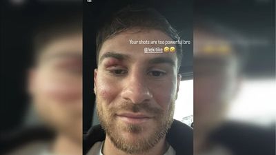 Argjentinasi postoi një ‘story’ me foton e tij në profilin e tij në Instagram, dhe menjëherë në shikim të parë, e ënjtura sipër syrit të tij tërheq vëmendjen, i cili, duke gjykuar nga teksti i mësipërm, është vepër e francezit.