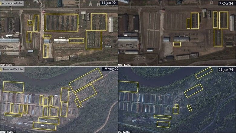 Fotot para dhe pas, të publikuara nga Ministria e Mbrojtjes e Mbretërisë së Bashkuar, tregojnë se si arsenali i Moskës është varfëruar rëndë - me mijëra tanke që janë zhdukur gjatë dy viteve, shkruajnë mediat britanike, përcjell Telegrafi.