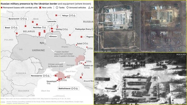 Më shumë prova janë shfaqur për një grumbullim të vazhdueshëm të pajisjeve ushtarake ruse dhe dislokimeve rreth Ukrainës, me imazhe të reja satelitore që zbulojnë një zgjerim të mëtejshëm të pranisë ushtarake në vende të shumta në Bjellorusi, Krime dhe Rusinë perëndimore.