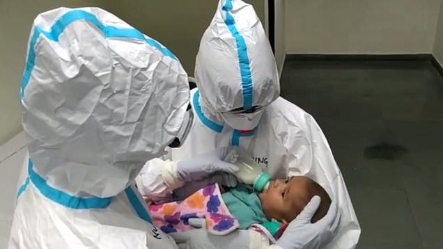 Infermierët kujdesen për foshnjën tremuajsh në Indi - pasi nëna, xhaxhai dhe gjyshja preken nga COVID-19