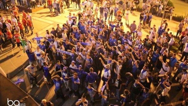 Tifo grupet Intelektualët dhe Skifterët festuan para teatrit të qytetit me fishekzjarre dhe mjete piroteknike.