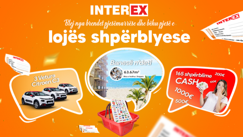 Rrjeti i supermarketeve Interex është duke e zhvilluar lojën shpërblyese, ku tri shpërblimet janë: banesa me pamje kah deti te Rëra e Hedhur në Shëngjin, 3 vetura të reja Citroen C3 dhe 165 shpërblime para të gatshme.