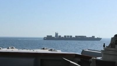 Marinsat nga Njësia e 31-të Ekspedicionare Detare hipën më pas në anijen e mallrave.