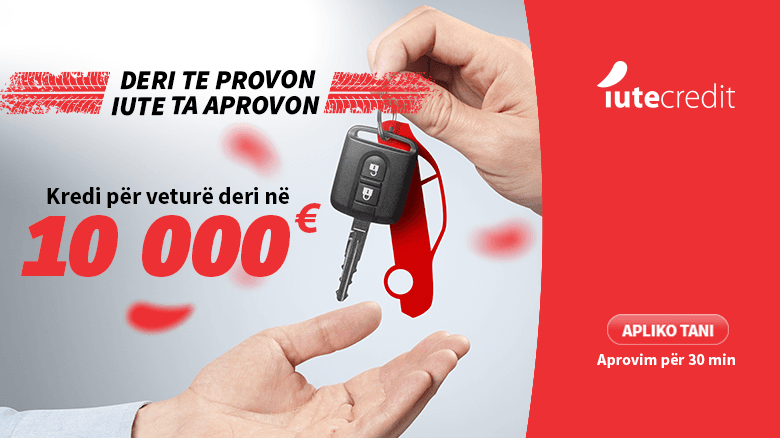 Tashmë në zyrat e IuteCredit apo edhe online në web faqe, mund të kërkosh një kredi për të blerë veturën tënde të re ose të përdorur. Një kredi deri në shumën 10.000 euro, e gjitha kjo pa shumë burokraci dhe deri sa ti e provon, Iute ta aprovon. 30 minuta është koha maksimale që do ju duhet të prisni deri në momentin e aprovimit të kredisë.