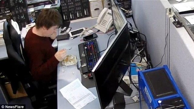 Në videon që është postuar më poshtë, shfaqet një mbikëqyrës i kompjuterëve, i cili pëson një moment të pakëndshëm teksa është duke ngrënë.