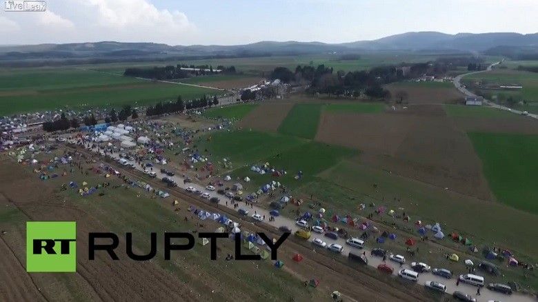 Televizioni rus ''Ruptly'' ka regjistruar nga qielli gjendjen e kufirit Greqi-Maqedoni, ku shihet gjendja e emigrantëve që presin transport për në Evropë, njofton Telegrafi.