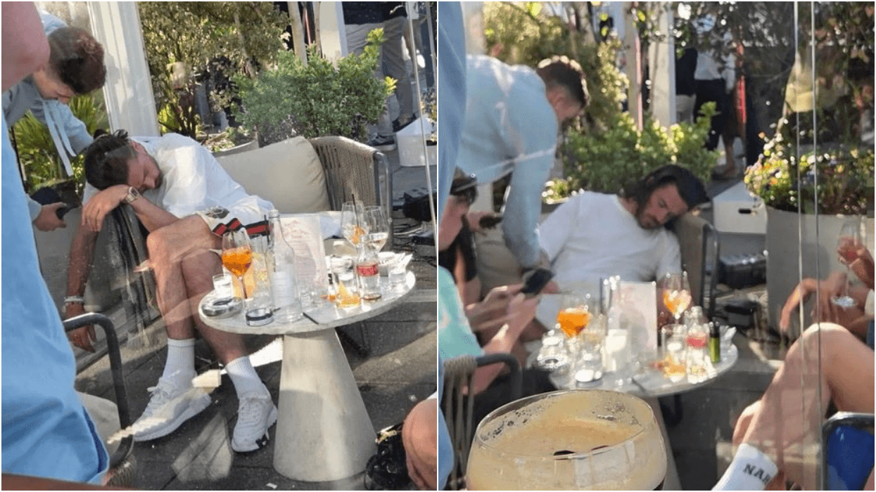 🚨 𝗡𝗘𝗪: Jack Grealish was spotted completely asleep at a table in a rooftop bar in Manchester, surrounded by glasses and bottles of cocktails after an afternoon of drinks with his friends.