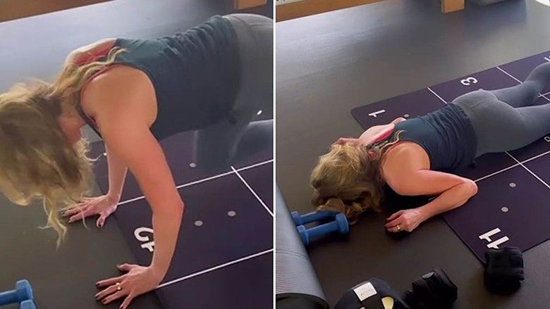 Në videon që ka shpërndarë pak më parë, Jennifer Aniston ekuilibron me galiç dhe ngritje këmbësh, bën vrapim në dysheme dhe shtytje, të gjitha me pesha në këmbë, transmeton Telegrafi.